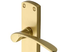 Our satin brass latch door handles have a plain back plate and are to be used in conjunction with a tubular or mortice latch. They are used on doors that are not required to be locked.